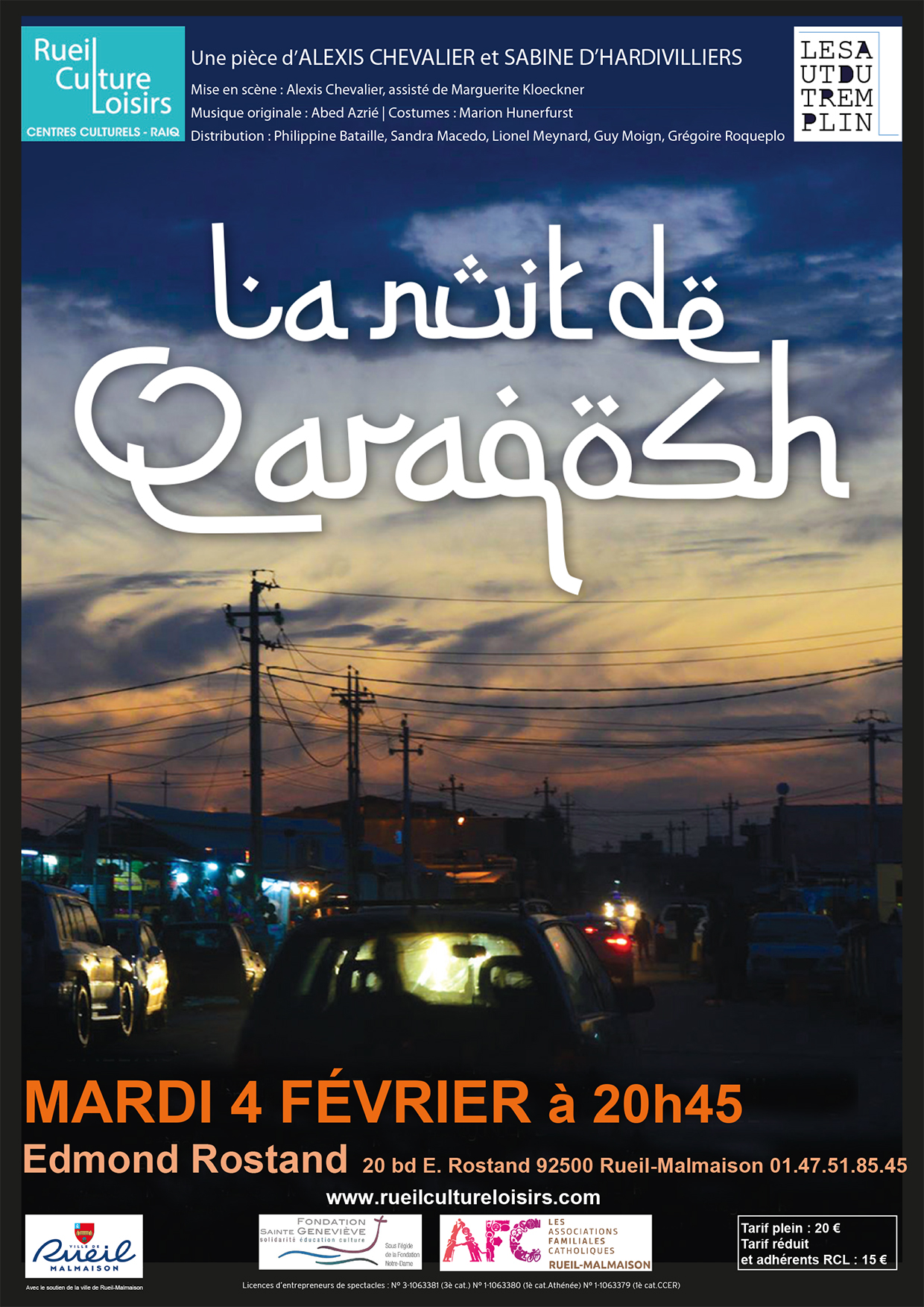 Théâtre Edmond Rostand, Mardi 4 février, 20h45 (20€, réduit et adhérents RCL 15€)